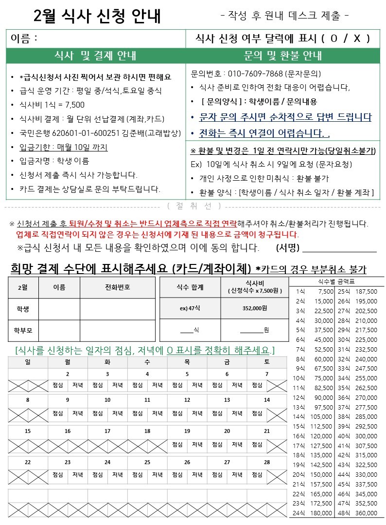 네오의 급식은 월~토 만 운영합니다!!