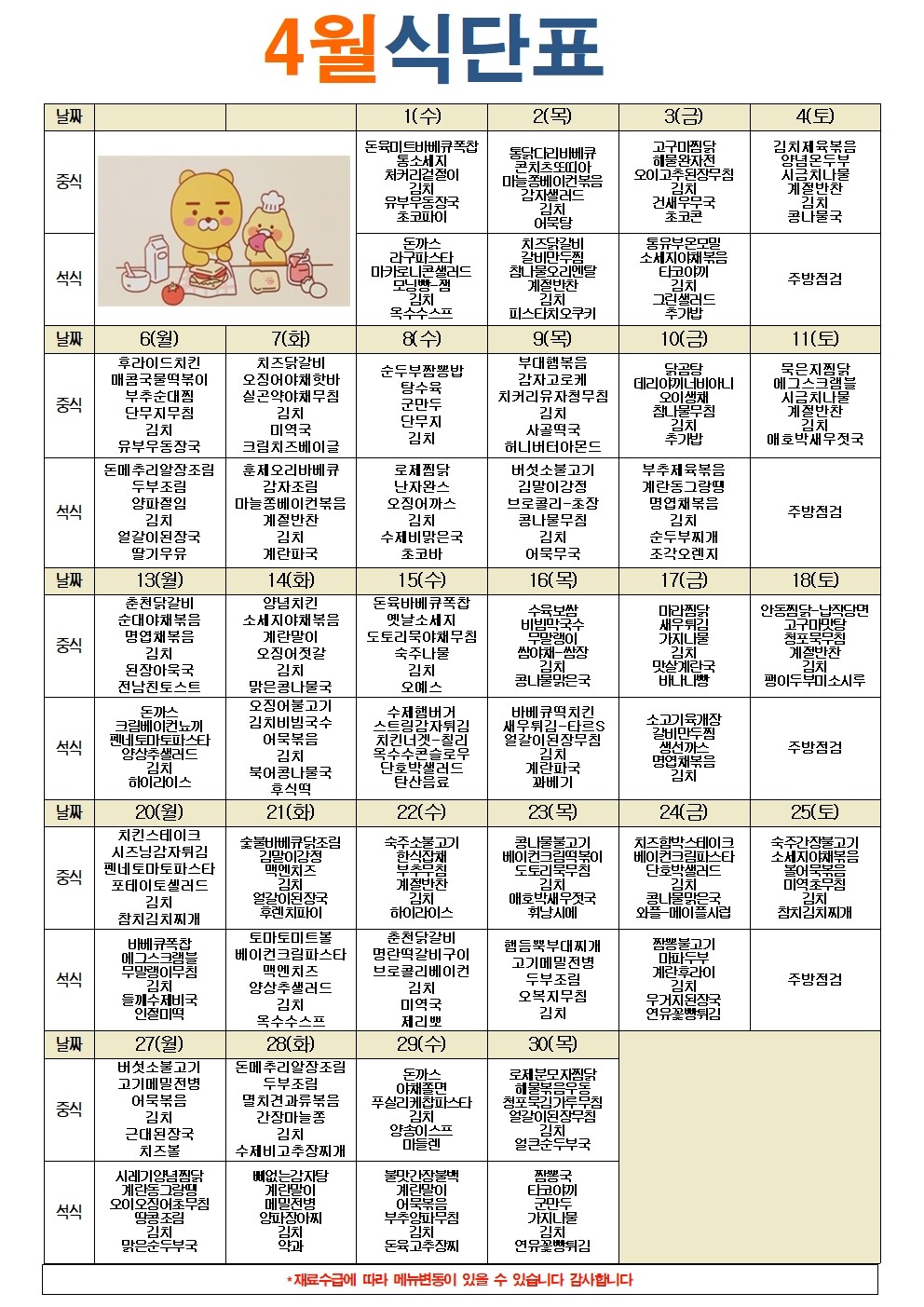급식 메뉴를 알려드립니다. :)